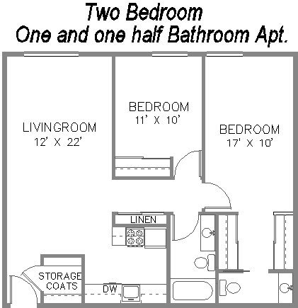 2 bedroom, 1.5 bathroom (for ages 55 and older)